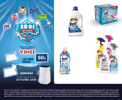 Seguici su www.emisupermercati.it 23 DETERGENZA CASA al 19 marzo 2023 2,98 DEOX Detersivo lavatrice classico 24 lavaggi 2 OGNI PEZZO BOLLINI 1,29 DEOX ammorbidente concentrato lavatrice Fiori di Primavera 33 lavaggi 1 OGNI PEZZO BOLLINO 3,69 PERLANA Renew Detersivo lavatrice colorati, lana ,capi neri 24 lavaggi 5,99 DIXAN Discs/Power caps pz 25/ 27 1,65 COCCOLINO ammorbidente assortito 40 lavaggi 2,49 ACE Candeggina Classica Casa & Bucato litri 5 1,49 ACE detergente pavimenti assortiti litri 1 1,99 NAPISAN spray limone&menta disinfettante superfici ml 750 (al litro € 2,65) 1,69 ACE candeggina Più Gentile spray, mousse ml 650/700 (al litro € 2,60) 1,49 SMAC EXPRESS sgrassatore cucina, disinfettante, scioglicalcare ml 650 (al litro € 2,29) 1 OGNI PEZZO BOLLINO 1,89 WC NET Gel wc assortito ml 800 (al litro € 2,36) 1,19 BREF WC Power Activ oceano,lavanda 1,65 BREF tavoletta WC brilliant gel Tutto in 1 Forza Artica 3,99 SMAC Panni Dry Cattura Polvere 10+ per pavimenti 36+4 panni 3,69 PERLANA caps Renew neri,colorati pz 18 2,39 REGINA Asciugoni 2 Veli 2 rotoli 0,65 SELEX pellicola 15 metri 0,99 SELEX Alluminio 8 metri LB2 piatti piani, ciotole, bicchieri