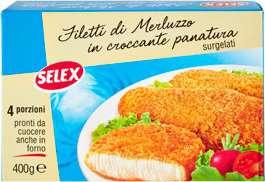 SELEX filetti di merluzzo in croccante panatura g 400 (al kg € 8,98)