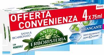 23 CURA PERSONA DAL 20 APRILE AL 3 MAGGIO 2023 4 pezzi Dentifricio Antica Erboristeria ml.75X4 € 4,27 €2,99 30% Carta igienica Kilometrica Tenderly x4 rotoli € 3,82 €2,29 40% €2,99 OFFERTA FIDELITY Dentifricio Blanx vari tipi ml.75 €2,18 Spazzolino Activ Plus Selex €3,79 Rasoio extreme 3 wilkinson x4 pezzi €1,25 €1,00 20% Assorbenti Nuvenia Ultra vari tipi €2,97 €2,38 20% Bagnoschiuma Cleo camelia e argan/iris e miele ml.750 €2,49 OFFERTA FIDELITY Shampoo Clear vari tipi ml.225 €8,90 Colorazione Excellence vari tipi €1,85 Fazzoletti Tenderly 4veli x12 pezzi €2,49 €1,99 20% Salviette baby farmacotone x72 pezzi €3,49 OFFERTA FIDELITY Pannolini unistar varie misure € 0,75 AL PEZZO