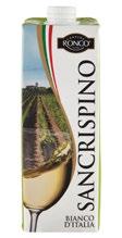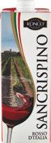 la mia cantina i liquori MONCARO Passerina Marche IGT Frizzante cl 75 €2,89 al litro € 3,85 NESPOLINO Vino Rosso IGT cl 75 €2,99 al litro € 3,99 GALASSI Romagna DOC Pagadebit Vino Frizzante cl 75 €3,29 al litro € 4,39 ROVÈ Sangiovese/ Trebbiano DOC cl 75 €1,98 al litro € 2,64 MONCARO Verdicchio dei Castelli di Jesi DOC Classico cl 75 €2,99 al litro € 3,99 NESPOLINO Vino Bianco IGT cl 75 €2,99 al litro € 3,99 FATASCIÀ Chardonnay/ Zibibbo IGT cl 75 €4,59 al litro € 6,12 RIGHI Pignoletto Reno Frizzante DOC cl 75 €2,79 al litro € 3,72 FRESCHELLO Spumante Extra Dry cl 75 €2,39 al litro € 3,19 BORGO PALAZZI Prosecco Extra Dry Treviso DOC cl 75 €4,49 al litro € 5,99 NOTTE ROSSA Primitivo del Salento IGP cl 75 €3,99 al litro € 5,32 BANFI Chianti DOCG cl 75 €4,85 al litro € 6,47 SBUROUN Sangiovese Superiore Romagna DOC cl 75 €4,95 al litro € 6,60 FEUDO MONACI Negroamaro Salento IGT cl 75 €4,59 al litro € 6,12 SANTA BARBARA Rosso Piceno DOC cl 75 €3,88 al litro € 5,17 LA GIOIOSA Aperitivo Spritzzoso cl 75 €3,59 al litro € 4,79 BORGHETTI Liquore di Vero Ca è Espresso cl 70 €9,40 al litro € 13,43 BONAVENTURA MASCHIO La Grappa 903 Barrique cl 35 €8,90 al litro € 25,43