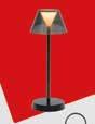 con base in ferro e paralume in alluminio, accensione touch, dimmerabile, testata ip54, con 48 led, 3,5 watt, 230 lumen, altezza cm. 38, luce calda 2900° k, cavo usb incluso - colore nero / bianco / ruggine € 129,90
