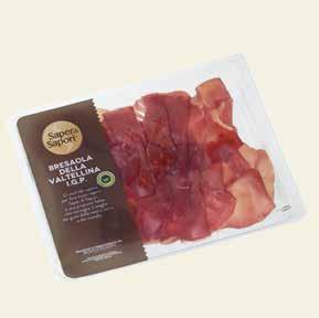 14 SALUMI PROSCIUTTO CRUDO Prosciutto cotto nazionale Alta Qualità Saper di Sapori all'etto € 2,67 €3,99 €3,39 € 16,96 al kg 15% Cacciatore barbaricino Sapore Sardo g.200 €1,99 € 19,90 al kg Petto di tacchino arrosto all'etto €1,19 € 11,90 al kg Mortadella Bologna IGP con pistacchio all'etto €2,59 1,94 25% Speck all'etto €3,99 € 44,33 al kg Bresaola della valtellina IGP Saper di Sapori g.90 €5,49 € 61,00 al kg Prosciutto crudo Carpegna DOP 18 mesi g.100 €4,49 € 40,82 al kg Prosciutto Crudo Serrano Gran Reserva confezione g.100 €3,49 € 38,78 al kg Prosciutto crudo toscano DOP 16 mesi g.90 €4,99 30% €3,49 €2,79 € 27,90 al kg 20% Prosciutto crudo San Daniele DOP all'etto €2,50 € 25,00 al kg Mustela all'etto
