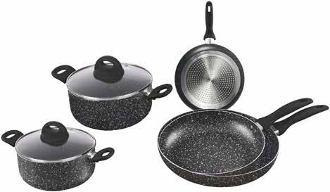 BLACK MOON BATTERIA DA CUCINA 7 PEZZI, ESTERNO NERO, INTERNO MARMORIZZATO ANTIADERENTE