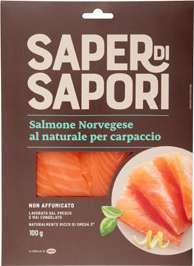SAPER DI SAPORI Salmone Naturale Norvegese per Carpaccio a Fetta Lunga g 100 (al kg € 49,90)