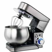 - sistema di miscelazione planetaria 6 velocità ciotola grande in acciaio inox da 5,0 litri - copertura antispruzzo - • gancio per impastare la pasta • una frusta per mescolare - spatola di plastica - protezione da sovraccarico del motore