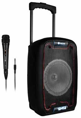 cassa bluetooth con batteria ricaricabile - lettore usb - lettore scheda micro sd - lngresso aux - altoparlante subwoofer da 8" - display led - luci led - lngresso microfono (microfono con cavo incluso) controlli vol u me/ bassi / acuti / eco - batteria al litio