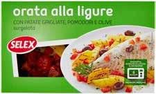 9 SURGELATO PESCHERIA PESCE FRESCO E CERTIFICATO DA € 5,75 -37% € 3,59 SELEX ORATA ALLA LIGURE 250 g al kg € 14,36 DA € 5,10 -35 % € 3,29 SELEX CUORI DI FILETTI DI NASELLO SURGELATI 300 g al kg € 10,97 € 6,99 FILETTO DI MERLUZZO NORDICO SURGELATO 400 g al kg € 17,48 € 6,99 ARBI GAMBERI ARGENTINI SGUSCIATI CONGELATI PEZZATURA XXL 250 g al kg € 27,96 € 14,99 PESCANOVA POLPO INTERO 1 Kg € 2,99 ARBI MISTO RISOTTO DI MARE 250 g al kg € 11,96 DA € 1,19 -31 % € 0,82 ANELLI DI TOTANO GIGANTE DEL PACIFICO DECONGELATI all'etto DA € 1,29 -23 % € 0,99 MAZZANCOLLA TROPICALE COTTA all'etto DA € 1,89 -15 % € 1,59 FILETTO DI PLATESSA all'etto DA € 2,39 -20 % € 1,89 FILETTO DI TONNO PINNAGIALLA DECONGELATO all'etto € 0,69 all'etto DA € 0,95 -27% ORATA 300/400 € 1,39 DA € 1,79 -22 % GAMBERO ARGENTINO DECONGELATO all'etto