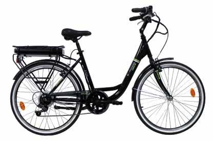 telaio acciaio colore nero - cambio 6 velocità shimano ty 21 - motore posteriore 250w - sensore velocità 12 magneti 3 livelli di assistenza - batteria 36v 7,8 ah autonomia in condizioni standard 40/45 km