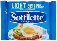 15 FRESCHI € 3,49 MEGGLE EMMENTAL LACTO-FREE* 300 g al kg € 11,63 € 3,25 LE MALGHETTE ASIAGO 300 g al kg € 10,83 € 1,69 LE MALGHETTE GORGONZOLA DOP 200 g al kg € 8,45 € 1,15 FERRARI GRANMIX CLASSICO 100 g al kg € 11,50 € 2,79 ACCADÌ BENESSERE MOZZARELLA SENZA LATTOSIO 3x 100 g al kg € 9,30 € 2,35 LEERDAMMER FETTE 200 g al kg € 11,75 € 1,49 SOTTILETTE LIGHT 200 g al kg € 7,45 € 2,48 PHILADELPHIA ORIGINAL FORMAGGIO FRESCO SPALMABILE 250 g al kg € 9,92 € 1,59 PHILADELPHIA BENESSERE LIGHT FORMAGGIO FRESCO SPALMABILE 175 g al kg € 9,09 € 2,89 MEGGLE BURRO TRADIZIONALE FIORE BAVARESE 250 g al kg € 11,56 DA € 4,19 -16 % DA € 4,09 -20 % DA € 2,35 -28 % DA € 1,75 -34 % € 1,65 STRACCHINO ALTA QUALITÀ GRANAROLO 170 g al kg € 9,71 DA € 2,37 -30 % € 1,49 GALBANINO FETTE 120 g al kg € 12,42 DA € 1,79 -16 % DA € 2,89 -18 % DA € 2,06 -27% DA € 3,25 -23 % DA € 2,17 -26 % DA € 3,39 -14 % € 1,35 CASEIFICIO VALCOLATTE RICCOTTA " LA GUSTOSA" 250 g al kg € 5,40 SOTTILETTE CLASSICHE 400 g al kg € 6,23 € 2,49 DA € 1,79 -24 % DA € 3,54 -29 %