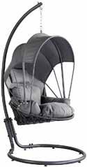 Poltrona sospesa + cuscini struttura supporto e guscio in acciaio verniciato a polvere nero (finitura opaca) rivestimento guscio tramite nastro in pvc mm 35 (g 40 g /m2), grigio, cuscino seduta e schienale in cotone g 300/m2 spessore cm. 8, grigio, cm 120x100x200 h