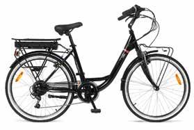 telaio in acciaio colore nero - forcella ammortizzata - freni v-brake anteriore e posteriore - ruota 26” - motore 250w 36v batteria al litio 7,8 ah 280 wh - display led con 3 liveli di assistenza con soft start - cambio 6 rapporti - pendenza max 10° - peso kg 24 - portata max 100 kg funzione “walk” per il trasporto a piedi