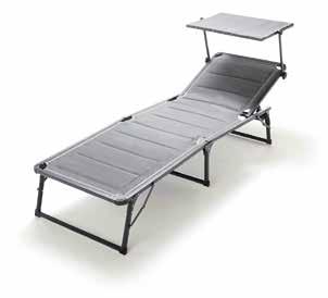 Lettino pieghevole Naxos con tettuccio colore grigio - struttura in alluminio verniciato a polvere antracite finitura opaca - tessuto superiore poliestere 600d 3d mesh con fasce imbottite verde - tessuto inferiore textilene 1x1 dim. cm. 194x67x30,5 altezza