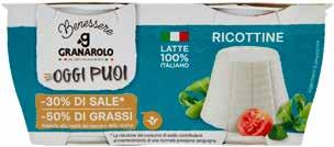 7 FRESCHI DA € 2,49 -25 % € 1,85 GIOVANNI RANA GNOCCHETTI FRESCHI DI PATATE 500 g al kg € 3,70 DA € 2,35 -28 % € 1,69 LEERDAMMER FORMAGGIO ORIGINAL 150 g al kg € 11,27 DA € 1,55 -25 % € 1,15 GRANAROLO BENESSERE RICOTTINE 2x 100 g al kg € 5,75 DA € 2,93 -15 % € 2,49 BRIE' PRESIDENT PUNTA 200 g al kg € 12,45 DA € 1,42 -30 % € 0,99 MOZARI INVERNIZZI 125 g al kg € 7,92 DA € 1,99 -20 % € 1,59 TRENTIN GRANA PADANO DOP GRATTUGGIATO 100 g al kg € 15,90 DA € 2,40 -33 % € 1,59 AIA NO-ANTIBIOTICI* 6 UOVA FRESCHE DA ALLEVAMENTO A TERRA 100% ITALIANE 330 g al kg € 4,82 DA € 3,69 -27% € 2,69 RANA GIOIA VERDE RIPIENI ASSORTITI 250 g al kg € 10,76 DA € 1,65 -12 % € 1,45 GIOVANNI RANA PASTA ALL'UOVO SFOGLIAGREZZA 250 g al kg € 5,80 DA € 4,75 -16 % € 3,98 UNCONVENTIONAL BURGER VEGETALI CLASSICI O AL POMODORO 2x 110 g al kg € 18,09 DA € 1,38 -28 % € 0,98 YOMO YOGURT MAGRO GUSTI ASSORTITI 2x 125 g al kg € 3,92 € 9,90 DA € 12,90 -23 % PARMAREGGIO PARMIGIANO REGGIANO OLTRE 30 MESI 500 g al kg € 19,80 € 3,49 DA € 4,99 -30 % GIOVANNI RANA LASAGNE VARI TIPI 350 g al kg € 9,97