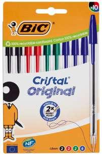 BIC PENNA SFERA CRISTAL ORIGINAL pezzi 10 colore nero, blu o assortito. Nuovo pack ecologico