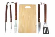 SET 4 UTENSILI BARBECUE (forchettone, pinze, spatola, coltello) con tagliere in legno dim. cm. 39x24