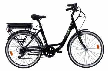 telaio acciaio colore nero - cambio 6 velocità shimano ty 21 - motore posteriore 250w - sensore velocità 12 magneti 3 livelli di assistenza - batteria 36v 7,8 ah autonomia in condizioni standard 40/45 km