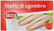 1,79 SELEX filetti di sgombro all'olio di oliva g 125 al kg € 14,32 2,19 SELEX mais dolce lessato pz 3 x g 160 al kg € 4,56 0,89 SELEX maionese tubo ml 150 al kg € 5,93 0,24 PASUBIO acqua minerale naturale litri 1,5 al litro € 0,16 0,99 SELEX vino da tavola bianco, rosso litri 1 0,79 SELEX tè limone, pesca 3 brick x cl 20 al litro € 1,32 0,99 SELEX succo e polpa assortiti 3 brick x cl 20 al litro € 1,65 1,25 SAPER DI SAPORI patatine classiche doppia cottura g 150 al kg € 8,33 2,98 SAPER DI SAPORI olive taggiasche denocciolate g 180 al kg € 16,56