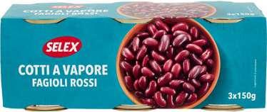 g 350 €1,19 al kg € 3,40 SELEX Fagioli Rossi Cotti a Vapore 3 latt x g 150 €1,99 al kg € 4,74 SELEX Riso