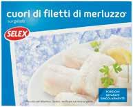 PESCE FRESCO E CERTIFICATO € 4,99 SELEX CUORI DI FILETTI DI MERLUZZO SURGELATI 400 g al kg € 12,48 € 5,89 OCEAN 47 FILETTI DI PLATESSA SURGELATI 270 g al kg € 21,81 DA € 6,43 -22 % € 4,99 OCEAN 47 FILETTI DI PESCE SAN PIETRO SELVAGGIO CONGELATI 250 g al kg € 19,96 € 12,50 UNOPIU GAMBERI SGUSCIATI CONGELATI CAL. 50/70 750 g al kg € 16,67 € 4,99 CODA MAZZANCOLLA TROPICALE SCOTTATA SURGELATA 200 g al kg € 24,95 € 8,25 ARBI POLPO PULITO CONGELATO 500 g al kg € 16,50 DA € 0,79 -25 % € 0,59 VONGOLE O LUPINI all'etto DA € 0,79 -25 % € 0,59 SGOMBRI all'etto DA € 1,69 -11 % € 1,49 TRANCIO DI SMERIGLIO DECONGELATO all'etto DA € 1,99 -20 % € 1,59 FILETTO DI ORATA all'etto € 0,79 all'etto DA € 1,09 -27% BRANZINO 300/400 € 0,69 DA € 0,79 -12 % TOTANI all'etto