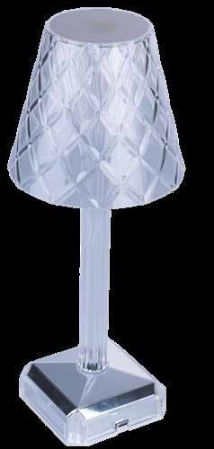- con telecomando - funzione luce: flash, stroboscopica, dissolvenza, soffusa - regolazione della luminosita' con tocco touch - assorbimento 3 watt - batteria 2000 mah -