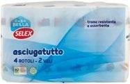 Spesa Difesa 3,19 SELEX crema spalmabile pistacchio g 200 al kg € 15,95 0,79 SELEX cioccolato al latte g 100 al kg € 7,90 1,15 SELEX gallette di riso ricoperte di cioccolato fondente g 100 al kg € 11,50 2,99 SELEX Farina di Mandorle g 200 al kg € 14,95 1,49 SELEX NATURA CHIAMA Infusi assortiti 20 filtri - g 40 al kg € 37,25 1,15 SELEX crostatine cacao, albicocca 6 pz - g 240 al kg € 4,79 0,88 SELEX Wafer assortiti g 175 al kg € 5,03 1,19 SELEX Fette Biscottate Dorate pz 36 g 320 al kg € 3,72 2,69 SELEX prugne secche denocciolate g 250 al kg € 10,76 1,55 SELEX succo assortito litri 1,5 al litro € 1,03 2,49 CASA BELLA SELEX Asciugatutto 2 veli 4 pz 1,69 SELEX alluminio metri 16 1,29 SELEX Pellicola 50 mt 2,39 SELEX carta Igienica 2 veli profumata al talco pz 6 0,89 SELEX Assorbenti Ripiegati ultra comfort