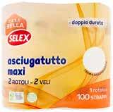 Scopri di più su prodottiselex.it € 3,79 SELEX CASA BELLA DETERSIVO PER LAVATRICE LIQUIDO CONCENTRATO CLASSICO 18 CAPSULE IDROSOLUBILI 441 g DA € 4,60 -24 % € 3,49 SELEX NATURA CHIAMA LAVATRICE ECO 30 LAVAGGI - 1500 ml DA € 3,59 -16 % € 2,99 SELEX NATURA CHIAMA DETERSIVO PER LAVASTOVIGLIE PASTIGLIE MULTIFUNZIONE ECOLOGICO 26x18 g DA € 1,80 -22 % € 1,39 SELEX CASA BELLA CURA LAVASTOVIGLIE 5 AZIONI 250 ml DA € 1,79 -24 % € 1,35 SELEX CASA BELLA CANDEGGINA DELICATA CON TAPPO SALVABIMBO 2 L DA € 2,35 -15 % € 1,99 SELEX ADDITIVO BUCATO MULTICOLOR 600 g DA € 2,18 -31 % € 1,49 SELEX CASA BELLA SGRASSATORE LIMONE 750 ml DA € 1,75 -17% € 1,45 SELEX CASA BELLA DETERGENTE PER PAVIMENTI PARQUET E SUPERFICI PREZIOSE 1 L DA € 1,79 -45 % € 0,98 SELEX CASA BELLA PANNO LAVA E ASCIUGA 3 pezzi DA € 1,39 -10 % 1,25 SELEX CASA BELLA PANNOVETRI Cm 38X40 DA € 2,45 -28 % € 1,75 SELEX CASA BELLA ASCIUGATUTTO MAXI 2 ROTOLI DA € 1,05 -19 % € 0,85 SELEX ALLUMINIO 8 M DA € 1,38 -50 % € 0,69 SELEX SACCHI GELO MEDI CM 23X32 20 pezzi DA € 2,95 -18 % € 2,39 SELEX CASA BELLA CONTENITORE IN ALLUMINIO CON COPERCHIO 32X26X5 CM 4 pezzi DA € 1,70 -18 % € 1,39 SELEX CASA BELLA WC GEL assortiti 750 ml
