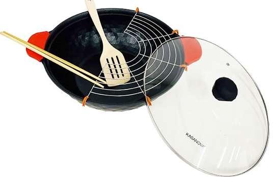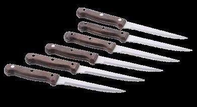 4 pezzi contiene: 1 paletta, 1 forchettone, 1 pinza e 1 pennello con setole in silicone. Parti metalliche e manici in acciaio inossidabile.