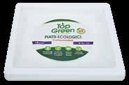 Top Green sono completamente biodegradabili e compostabili perchè realizzati con polpa di canna da zucchero, un materiale naturale rinnovabile, residuo della produzione dello zucchero. Sono adatti per qualsiasi alimento ed utilizzabili anche nel forno a microonde.