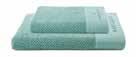 SET ASCIUGAMANO VISO + OSPITE in spugna jacquard, 100% cotone, con logo Navigare sulla balza nei colori blu - ruggine - giallo - verde misura 50x100 cm. viso + 40x50 cm. ospite peso 480 gr/mq
