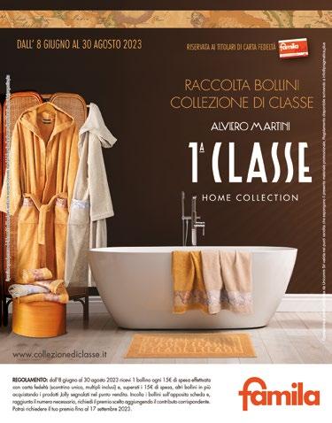 famila.it segui le nostre imperdibili offerte www.collezionediclasse.it SCOPRI I PRODOTTI CHE TI PERMETTONO DI ACCELERARE LA TUA RACCOLTA BOLLINI COLLEZIONE DI CLASSE 3,99 PRIL gel lavastoviglie assortite 38/30 lavaggi ml 540/630 0,79 SCALA detersivo piatti Igienizzante sgrassante limone ml 750 1,99 FOXY Asso Ultra asciugatutto decorato 2 maxi rotoli 3,99 CHANTECLAIR detersivo lavatrice muschio bianco 35 lavaggi litri 1,75 RISERVATO AI TITOLARI DI CARTA CLUB 2,99 LENOR UNstoppables Fresh profumo per il bucato g 210 2,79 VERNEL ammorbidente concentrato blu oxygen, sogni di loto 48/46 lavaggi ml 1200/1150 2,19 AMUCHINA additivo bucato igienizzante con ammorbidente litri 1 RISERVATO AI TITOLARI DI CARTA CLUB 1,99 ACE candeggina Più Gentile +Oxygen ml 650 1,49 SMAC EXPRESS sgrassatore disinfettante, cucina, igienizzante ml 650 RISERVATO AI TITOLARI DI CARTA CLUB 1,49 ACE detersivo pavimenti talco e muschio bianco litri 1 RISERVATO AI TITOLARI DI CARTA CLUB 1,49 ACE Wc Gel candeggina ml 700 RISERVATO AI TITOLARI DI CARTA CLUB 1,49 BREF WC Blue Activ+ Igiene 5,90 TUSCANY carta igienica 2 veli - pz 12 1 BOLLINO 2 BOLLIN 2 BOLLINI 7,90 DASH Power Pods detersivo lavatrice Azione Extra-Igienizzante 19 Lavaggi