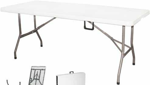 TAVOLO PIEGHEVOLE A VALIGETTA colore bianco dim. cm. 181x74x74 h. - telaio in ferro - ripiano tavolo in resina - struttura pieghevole salvaspazio