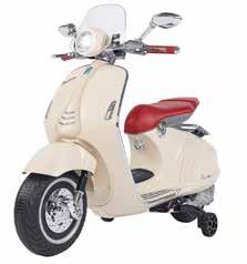 - 2 batterie 6 volt 4,5 ah - velocità dai 2 ai 3 km/h - suoni realistici - rotelline laterali di sicurezza - portata max 30 kg - anni 3+ - dim. cm. 108x49x75 altezza - durata batterie 1 ora - tempo di caricamento 9-10 ore - colore crema / rosso