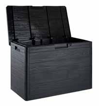 BAULE MULTIUSO colore antracite scuro. finitura effetto legno. capacita' 160 litri. predisposizione per chiusura con lucchetto. montaggio senza attrezzi. dim. cm 77,5x44,5x53h.