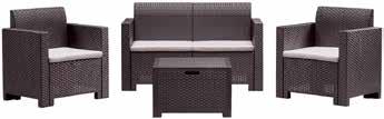 - in polipropilene con cuscini - composto da: 2 poltrone + 1 divanetto + 1 tavolino