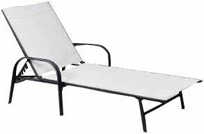 - struttura in metallo finitura matt - con braccioli - seduta in poliestere reclinabile in 4 posizioni - dim. cm. 194x70x95,5 h. - colore seduta bianco ghiaccio - struttura colore grigio canna di fucile
