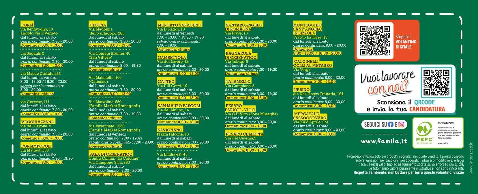 *i prodotti con asterisco non sono presenti nei supermercati di: Calisese, via Malanotte 100Mercato Saraceno, via Decio Raggi 12San Vittore, via C. Brumer 40Forlì, via Maceo Casadei 22Forlì, via Bentivoglio 18 macelleria speciale Hamburger www.famila.it al kg BRACIOLE DI SUINO* €4,90 al kg PER TE Sovracosce di Pollo €4,90 al kg HAMBURGER DI BOVINO ADULTO SCOTTONA* €11,90 formato famiglia formato famiglia PER TE Alette di Pollo €3,90 al kg SELEX NATURA CHIAMA Petto di Pollo a Fette Senza Antibiotici €12,90 al kg SALUMIFICIO TRENTINO Carpaccio di Carne Salada di Bovino g 125 €2,99 al kg € 23,92 HAMBURGER ROMAGNOLA/ MARCHIGIANA g 200 €3,39 al kg € 16,95 PER TE * Hamburger Chianina Bovino Adulto Senza Glutine g 200 €3,39 al kg € 16,95 PER TE Burger di Scottona Bovino Adulto g 300 €3,39 al kg € 11,30 PER TE Hamburger Misti di Suino 6 pz - g 600 €4,89 al kg € 8,15