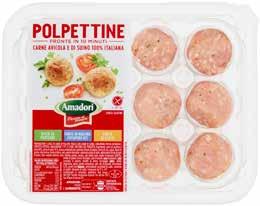 4 MACELLERIA Offerta macelleria valida solo nei punti vendita con banco carne confezionata ed esclusi i punti vendita con servizio e taglio al banco 0,85 all'etto PREZZO SPECIALE GRIGLIATA MISTA DI SUINO al kg € 8,50 1,80 1,50all'etto -16% TAGLIATA DI BOVINO al kg € 15,00 1,90 1,60all'etto -15% SOTTILISSIME DI BOVINO SCOTTONA al kg € 16,00 4,50 PREZZO SPECIALE SALAMELLA / LUGANEGA / MIX CONTADINA 600 g al kg € 7,50 0,95 0,79 all'etto -16% BISTECCHE DI SUINO al kg € 7,90 4,99 3,99 -20% HAMBURGER DI CHIANINA 200 g al kg € 19,95 1,35 0,99 all'etto -26% FIOR DI SCELTA FESA DI TACCHINO A FETTE CONFEZIONE RISPARMIO al kg € 9,90 6,99 3,99 -42% AIA HAMBURGER DI TACCHINO 4 x 100 g al kg € 9,98 10,98 5,49 -50% AIA BON ROLL SPINACI 750 g al kg € 7,32 3,50 PREZZO SPECIALE BELLI PRONTI PASTRAMI DI BOVINO / TACCHINO TACCHINA IN PORCHETTA 100 g al kg € 35,00 4,99 PREZZO SPECIALE FIOR DI SCELTA HAMBURGER MISTI 6 x 100 g al kg € 8,32 2,99 PREZZO SPECIALE AMADORI POLPETTINE 240 g al kg € 12,46
