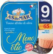 BERETTA Il Cotto a cubetti g 120 al kg € 13,25 1,59 FIOR DI MASO Asiago dop cubetti g 200 al kg € 11,00 2,20 MAREBLU VeroSapore tranci di tonno olio extra vergine di oliva pz 3+1 x g 60 al kg € 14,37 3,45 MARE APERTO tonno all'olio di oliva e un pizzico di sale pz 3 x g 70 al kg € 11,86 2,49 COELSANUS carote in agrodolce g 700 sgocc. g 360 al kg € 6,81 2,45 GOLOSI E SFIZIOSI olive verdi rondelle g 290 - sgocc. g 130 al kg € 10,38 1,35 NERI olive nere denocciolate g 350 - sgocc. g 150 al kg € 7,67 1,15 SACLÀ sottolì funghetti g 290 al kg € 8,59 2,49 IPOSEA carciofini tagliati in olio di semi di girasole g 290 al kg € 6,03 1,75 SACLÀ acetelli peperoni fettucce g 290 sgocc. g 145 al kg € 9,31 1,35 MARUZZELLA filetti di sgombro g 125 al kg € 10,80 1,35 GOLOSI E SFIZIOSI olive nere rondelle g 290 - sgocc. g 130 al kg € 11,46 1,49 FIOR DI MASO mozzarella julienne g 200 al kg € 9,50 1,90 RISO SCOTTI riso integrale Venere g 500 al kg € 4,90 2,45 LEERDAMMER cubotti g 110 al kg € 15,45 1,70 SELEX ciliegine di mozzarella g 150 al kg € 8,33 1,25 SELEX farciriso con olio g 280 al kg € 5,68 1,59