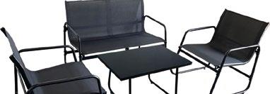 SALOTTINO DA ESTERNO in acciaio colore nero composto da 1 divano 2 posti, 2 poltrone, 1 tavolino