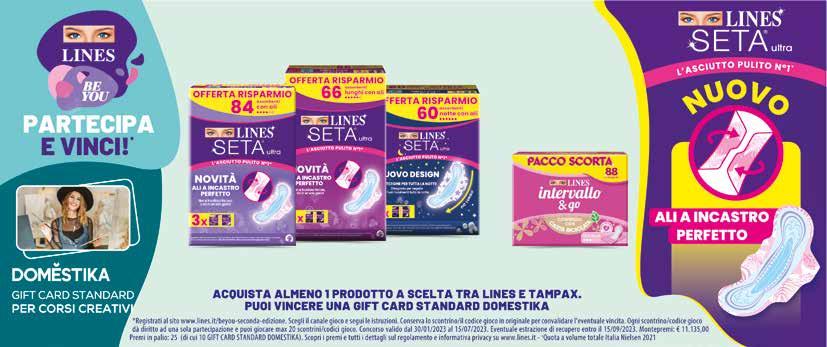 19 IGIENE INTIMA € 6,99 AVEENO DETERGENTE INTIMO 300 ml € 1,59 FRESH & CLEAN INTIMO PH 5.5 EXTRA DELICATO CALENDULA E MALVA 2x 200 ml € 8,99 SAUGELLA LAVANDA ATTIVA 140 ml € 1,09 FRIA SALVIETTE INTIME 20 pz € 1,49 VIVICOT SALVASLIP IN COTONE BIOLOGICO 20 pz € 1,49 VIVICOT ASSORBENTI IN COTONE BIOLOGICO vari formati € 2,99 LINES INTERVALLO & GO Regular 88 pz 1 € 8,90 LINES SETA ULTRA ASSORBENTI CON ALI vari formati 1 2 2