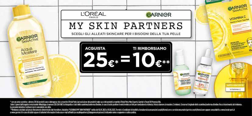 20 APRILE AL 17 MAGGIO 2023 DA € 7,98 -50 % € 3,99 AZ DENTIFRICIO 3D WHITE ULTRA WHITE 6x 65 ml DA € 2,99 -50 % € 1,49 SPUMA DI SCIAMPAGNA BAGNODOCCIA Varie profumazioni 650 ml DA € 12,40 -35 % € 7,99 L'ORÉAL REVITALIFT crema Antirughe Giorno e Notte 50 ml