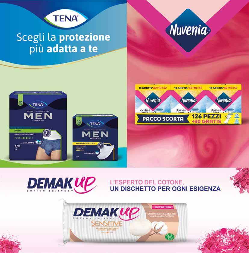 NUVENIA DAILIES FRESH REGULAR PROTEGGI SLIP 126 pz + 30 Gratis 1 2 1 2 € 3,90 TENA MEN ABSORBENT PROTECTOR Level 2 10 pz € 7,90 TENA MEN ACTIVE FIT PANTS PLUS s/m x9 /l x 8