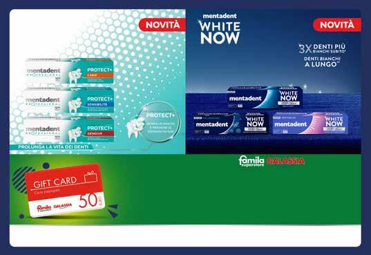 11 1 2 1 2 DA € 1,99 -40 % € 1,19 AZ DENTIFRICIO Complete Plus 65 ml DA € 1,19 -33 % € 0,79 AQUAFRESH TRIPLA PROTEZIONE dentifricio 3 in 1 gusto menta fresca e protezione denti 75 ml DA € 3,29 -24 % € 2,49 EQUILIBRA ALOE DENTIFRICIO Varie tipologie 75 ml DA € 23,90 -37% € 14,90 ORAL-B POWER SPAZZOLINO ELETTRICO RICARICABILE VITALITY 100 DA € 5,39 -13 % € 4,65 SELEX TESTINE per Spazzolini Elettrici Compatibili Oral-B Totale Clean 2 pezzi DA € 4,90 -28 % € 3,49 EQUILIBRA ALOE COLLUTORIO MULTIATTIVO 500 ml DA € 2,99 -26 % € 2,19 MENTADENT SPAZZOLINO KIDS DA € 1,99 -25 % € 1,48 MENTADENT DENTIFRICIO kids 2-6 50 ml DA € 1,98 -31% € 1,35 MENTADENT PROFESSIONAL Medium DA € 3,29 -34 % € 2,15 MENTADENT COLLUTTORIO DENTI E GENGIVE 300 ml € 2,75 MENTADENT PROFESSIONAL PROTECT + 75 ml € 2,75 DENTIFRICIO MENTADENT WHITE NOW 75 ml