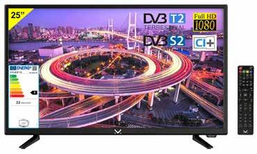 con schermo 25” full hdsintonizzatore digitale terrestre dvb-t/t2 hd e satellitare dvb-s/ s2 hd, riproduzione dei contenuti multimediali tramite usb, compatibile con modulo cam ci+ hd, doppia alimentazione 220v e 12v, adattatore 12v presa accendisigari (in dotazione), dimensione con piedistallo: 55,1 (l) x 38,1 (h) x 17,1 (p) cm, peso: 2.2 kg