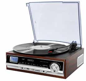 CAMRY CR1168 GIRADISCHI - bluetooth - tre velocità di rotazione del giradischi: 33/45/78 giri/min - radio - lcd - ingresso aux - slot sd/mmc - presa usb - telecomando -registrazione in formato file mp3