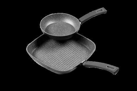 SET 2 PEZZI GRILL composto da padella diam. cm. 24 + bistecchiera cm. 28x28 - in alluminio con rivestimento antiaderente triplo strato - esterno colore grigio e interno marmorizzato - fondo adatto a tutti i tipi di cottura compresa induzione - manico in bachelite con effetto soft touch