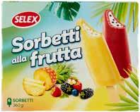 11 GELATI SAMMONTANA CINQUE STELLE CILIEGIA 6 x 60 g al kg € 11,08 PREZZO SHOCK! € 3,99 4 COPPE ORO 360 g al kg € 6,64 PREZZO SHOCK! € 2,39 ALGIDA CREMINO 8x 42 g al kg € 8,90 € 2,99 KINDER CHOCOLATE ICE CREAM 4x 38 g al kg € 18,46 € 2,99 BOUNTY ICE CREAM 4x 39.1 g al kg € 17,77 € 2,79 RINGO GELATO VANIGLIA 4x 80 g al kg € 12,47 € 3,99 MAGNUM REMIX MINI NOCCIOLA 6 x 44 g al kg € 16,10 € 4,25 GELATERIA CALLIPO GELATO CREME PREGIATE VARI GUSTI 310 g al kg € 8,87 € 2,75 CARTE D'OR CREMA VARIEGATA ALLA FRAGOLA CON PEZZETTI DI BISCOTTO 500 g al kg € 6,98 € 3,49 G7 GELATO VASCHETTA VARI GUSTI 1 kg € 4,79 VIENNETTA VANIGLIA 320 g al kg € 13,72 € 4,39 SELEX 4 MAXISTECCHI DI GELATO VANIGLIA RICOPERTI CIOCCOLATO AL LATTE E MANDORLE 350 g al kg € 5,57 € 1,95 SELEX 6 SORBETTI ALLA FRUTTA ASSORTITI ANANAS E FRUTTI DI BOSCO 360 g al kg € 6,25 € 2,25 SELEX 6 GELATI PRALINATI ALL'AMARENA 390 g al kg € 6,28 € 2,45 SELEX VEGETALE 100% 6 BISCOTTI RIPIENI DI GELATO ALLA SOIA 300 g al kg € 7,30 € 2,19 SELEX SAPER DI SAPORI GELATO VARI GUSTI 200 g al kg € 7,75 € 1,55