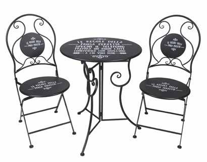 SET BALCONE: tavolo diam. cm. 60x72 h. + 2 sedie pieghevoli dim. cm. 38x38x94 h. - in metallo decorato colore nero