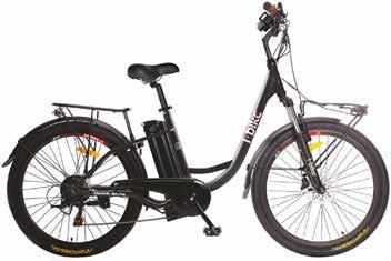 telaio in acciaio colore nero - ruote diam. 26"cambio 6 rapporti - batteria 360 watt - autonomia 40 km - pendenza 10% - peso kg. 28 - portata 120 kg - freni a disco - ricarica in 6 ore - supporto per smartphone con ricarica usb - lucchetto ruota posteriore