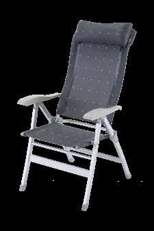 POLTRONA PIEGHEVOLE con schienale reclinabile 8 posizioni, braccioli e poggiatesta imbottito, struttura alluminio, tessuto textilene - dim. cm. 48x41x47/117 altezza